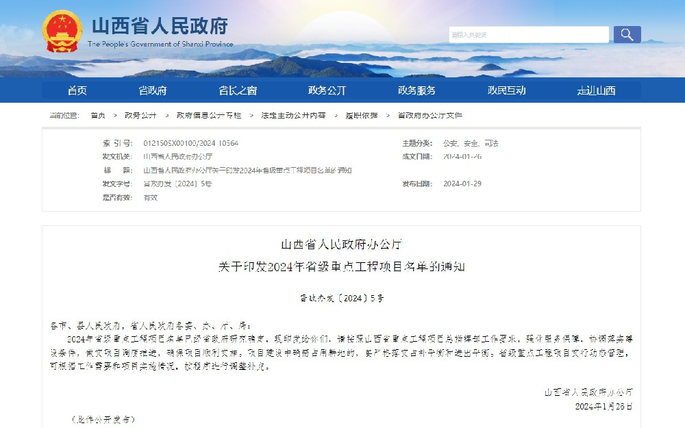山西省人民政府辦公廳關于印發(fā)2024年省···